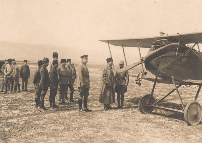 Smyrna im Jahr 1917. Hauptmann Buddecke mit Helm begrüßt General Otto Liman von Sanders, dt. Oberbefehlshaber d. türk. Armee.