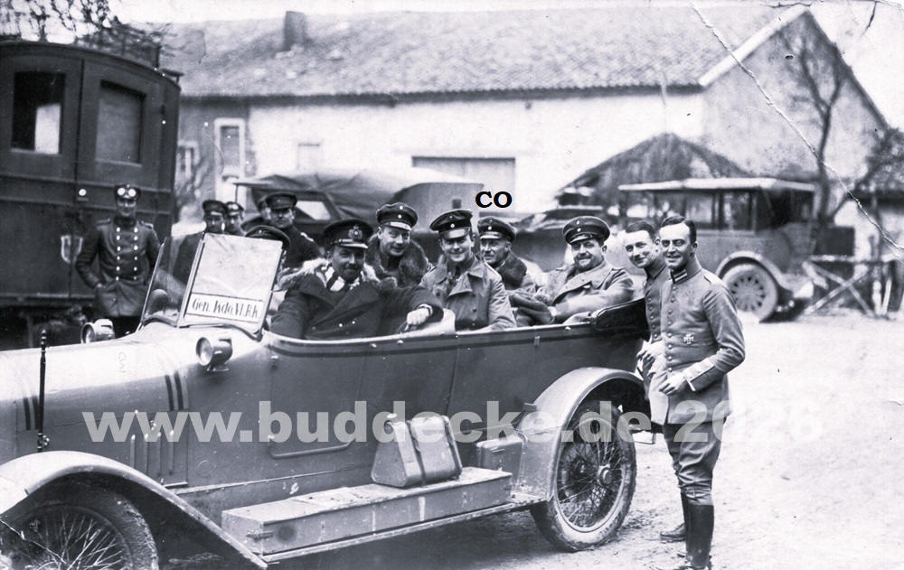 Cunel. Im Auto v. l. n. r.: Kraftfahrer, Korvettenkapitän Nikolaus Graf zu