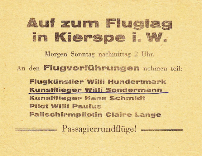 Zwischen den Kriegen machte sich Willy Sondermann als Kunstflieger