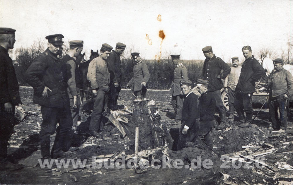 Die Reste des Flugzeugs der Besatzung Gefreiter Arnold Ritterath (P) und Oberleutnant Martin Hühn (O).