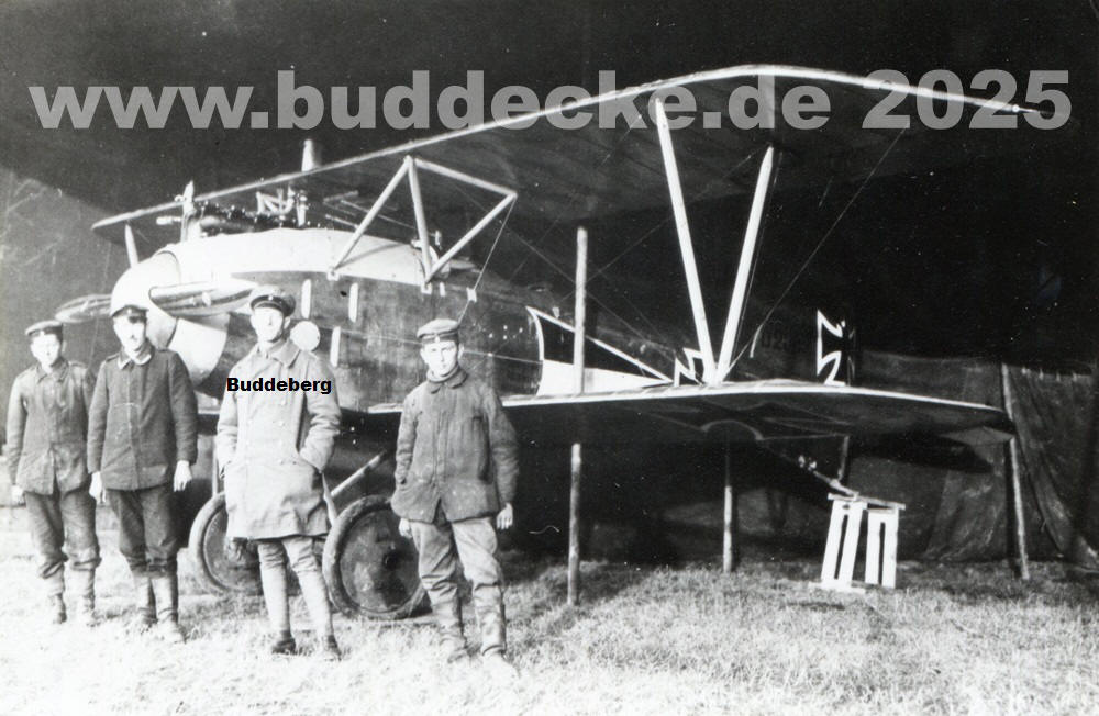 Lt. Karl Buddeberg (P) mit seinen Monteuren vor seiner Albatros D.III
