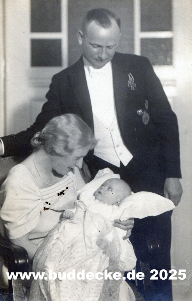 Obiges Foto zeigt Karl Huhold mit seiner Ehefrau Margot bei der Taufe ihres Sohnes,